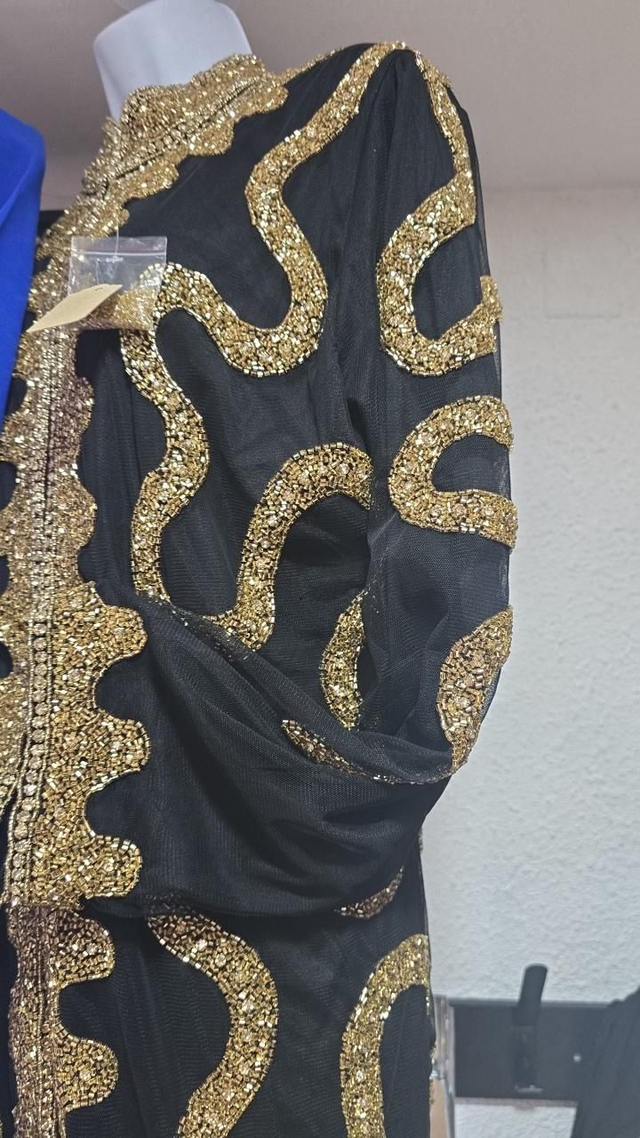 Blazer noir perlé en doré, doublure porté pour M//L.