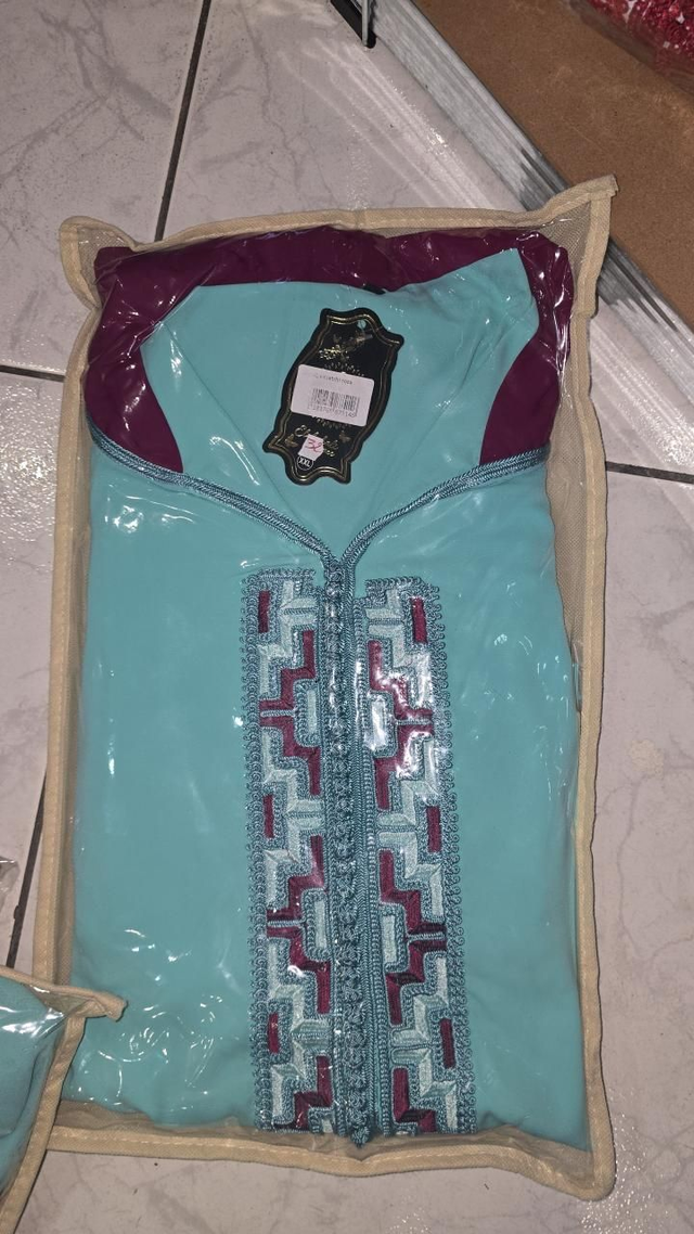Crêpe de soie, boublure manche et capuche, tres belle jellaba niveau finition c'est très bien travaillé, avec ourlet , taille taille bien
